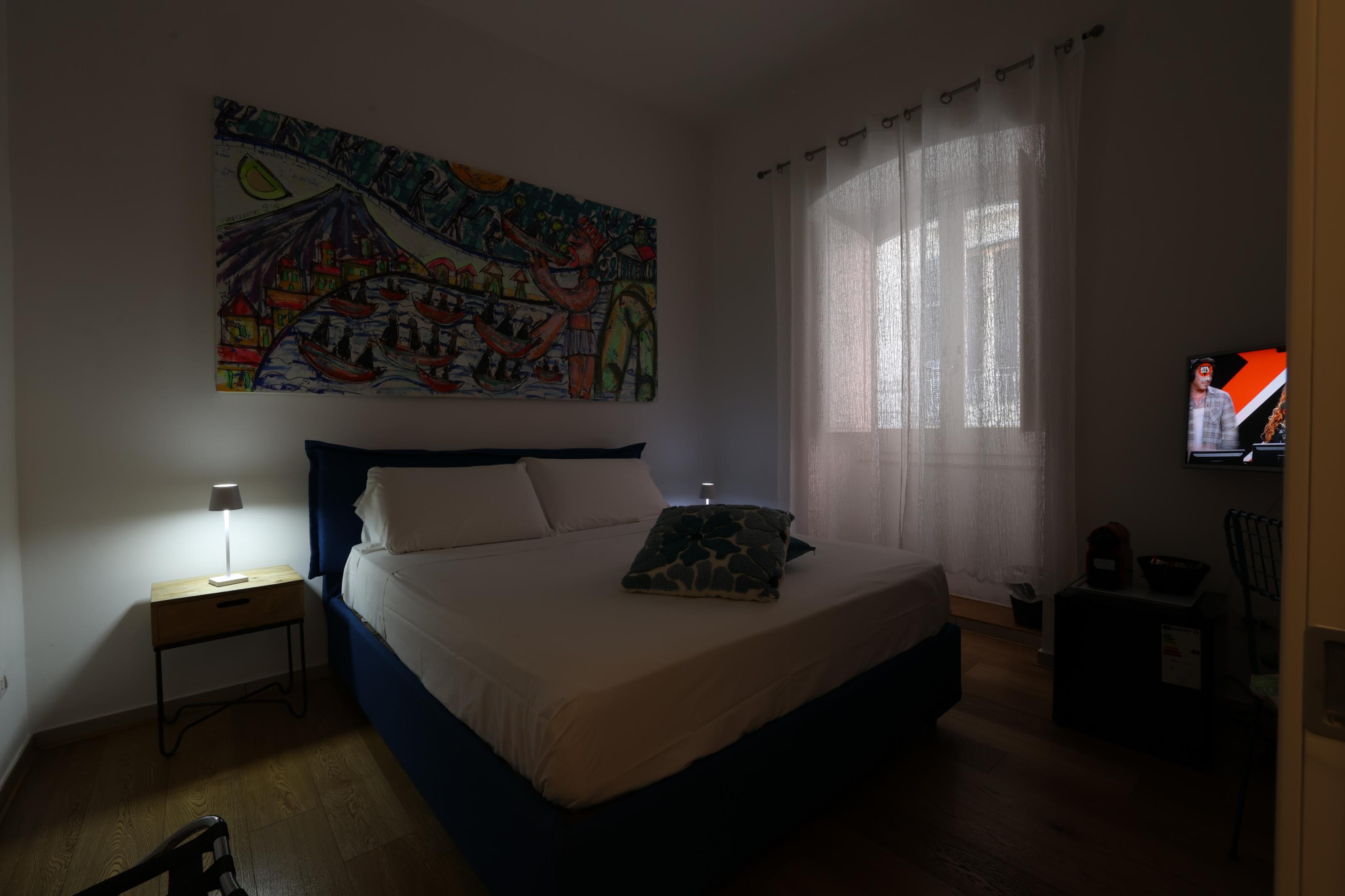 Elegante e luminosa camera privata situata sul Lungomare di Napoli, in una delle zone più belle della città. La stanza dispone di comodo letto matrimoniale, TV, Wi-Fi, scrivania e macchina del caffè. Gli ospiti hanno a disposizione un bagno privato esterno alla camera con doccia e tutti i comfort essenziali. Posizione ideale per passeggiare sul lungomare e raggiungere facilmente ristoranti, bar e le principali attrazioni della città. (Colazione non inclusa).